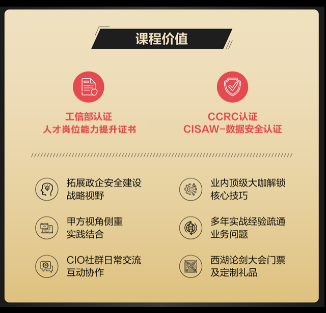 据悉,“数字安全官高级研修班”主要培训对象为党政军企网络安全工作的主管领导或主要负责人,旨在提升他们的数字安全建设战略思路与实践能力。而“网络攻防蓝队实战技法提升计划 ”主要针对有认证资质需求、通过场景化的学习案例驱动的学习,理实结合的学习,提升安全防护技能。