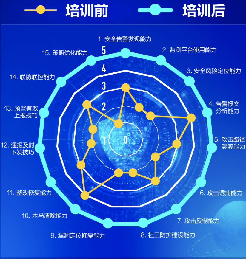 课程内容简介:主要针对有认证资格需求、通过学习提升安全技能、技术深耕、案例分析实操等。本次课程分为“蓝队能力基础课(线上自学)”和“蓝队能力核心课(线下集训)”。蓝队能力核心课通过线下集训形式开展,课程内容以IPDRO自适应保护模型为核心,结合安全组织、安全管理、安全技术三大体系,通过“暴露面监测(识别阶段-Identification)”、“防御强化(防护阶段-Protection)”、“威胁狩猎(监测阶段-Detection)”、“应急处置(响应阶段-Response)”、“安全运维(运营改进阶段-Operation)”五大能力域深入剖析蓝队。除了理论授课外,本次课程还配备实战演练场景,学员需要在给定的蓝队运营场景中进行实战演练,以蓝队角色对场景中的信息系统开展运营管理、告警监测、研判分析、应急处置、协同联动等操作,提升蓝队防守人员的综合实战能力。