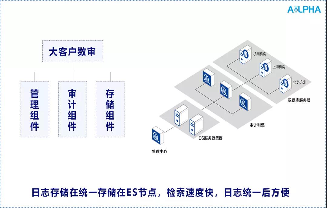3. 存储分离:审计的信息支持统一至ES大数据平台集群中分离存储,解决原本存储分布各机房,无法集中进行关联分析的痛点;