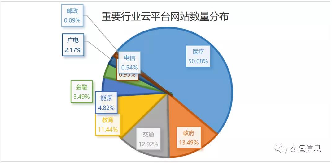 报告显示,全国重要行业网站有45.9万,其中在云平台上的重要行业网站有67401个,覆盖单位18363个。目前国内已有14.66%的重要行业网站已经上云,并且主要是医疗与政府行业。