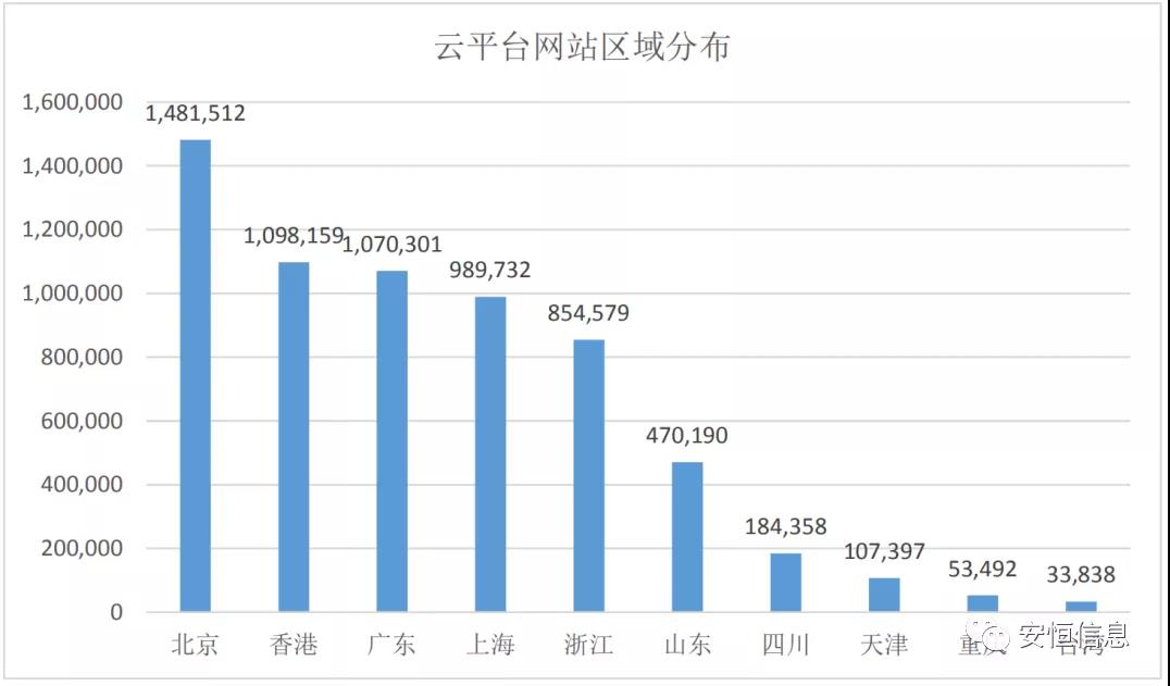 根据对云平台网站区域进行分析,发现主要分布在北京、香港、广东等区域。
