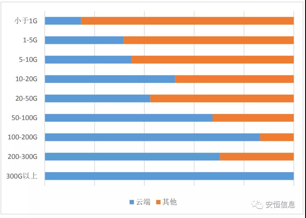 云计算技术的诸多优点使得云服务得以广泛应用,越多来越多的用户将业务迁移至云端,云端的流量也越来越大,但这也被大流量DDoS攻击所利用。从各流量区间分布来看,在大流量攻击中,攻击主力来自云端。