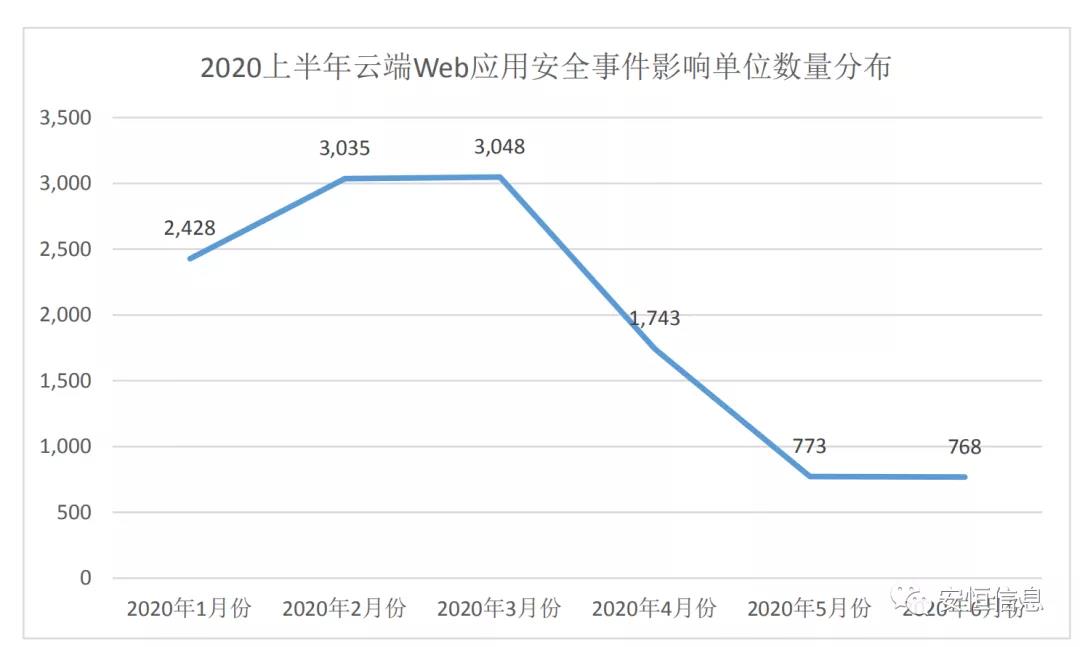 2020年上半年,主要针对网页篡改、不良信息和僵尸网站等进行监测,累计发现云端Web应用安全事件数量18257起,覆盖单位10324个。