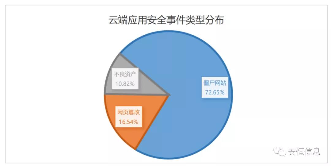 对云端Web应用存在的安全事件类型进行统计,主要是以僵尸网站为主。