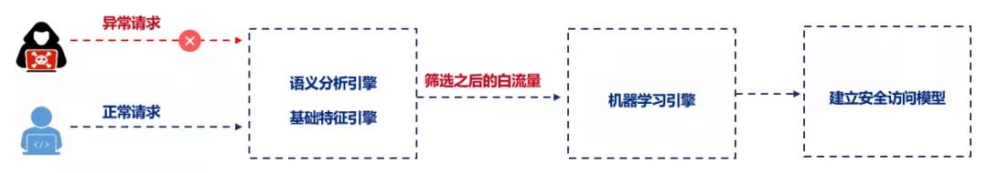 - 访问流量与安全模型无偏离度或者偏离度较小则属于白流量,无需经过安全引擎将流量直接放行
