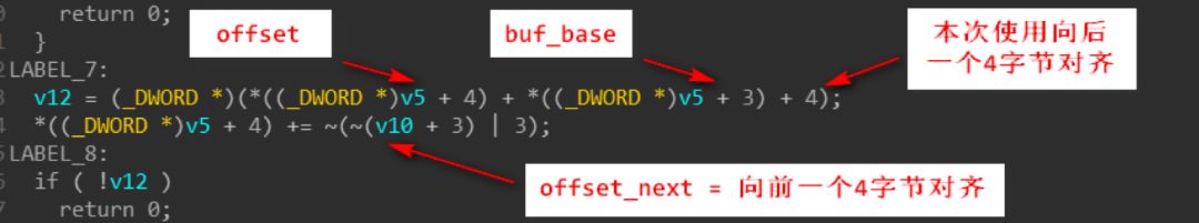 在x86环境下,通过逆向NameList::FCreateVval函数,发现每个成员名称前面会额外留0x30大小的空间作为头部,用于初始化各种数据。每次成员名称进行申请时,还会按照下图的计算公式按4字节对齐并保存与返回相关偏移: