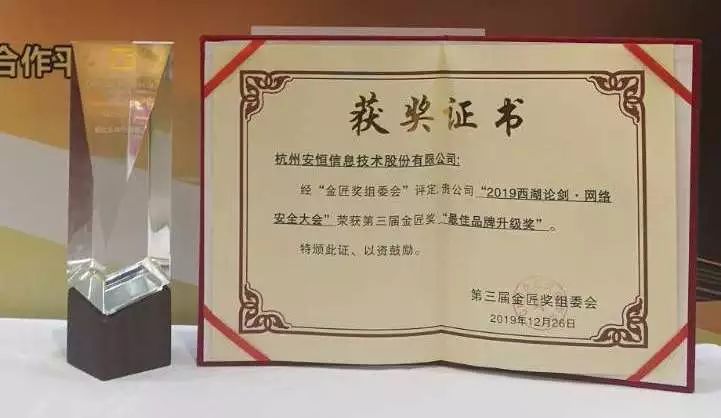 2019西湖论剑·网络安全大会荣获“金匠奖最佳品牌升级奖”_2019_安恒动态_关于人生就是搏z6尊龙_安恒信息