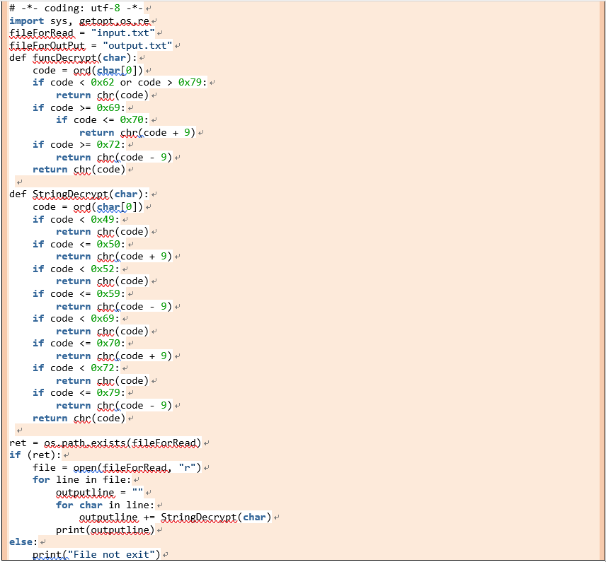 样本使用了多种字符串加密手段,其中最主要的解密方法是部分字符位移,函数和部分字符串使用的解密秘钥不同,但整体架构一致,下面给出解密脚本: