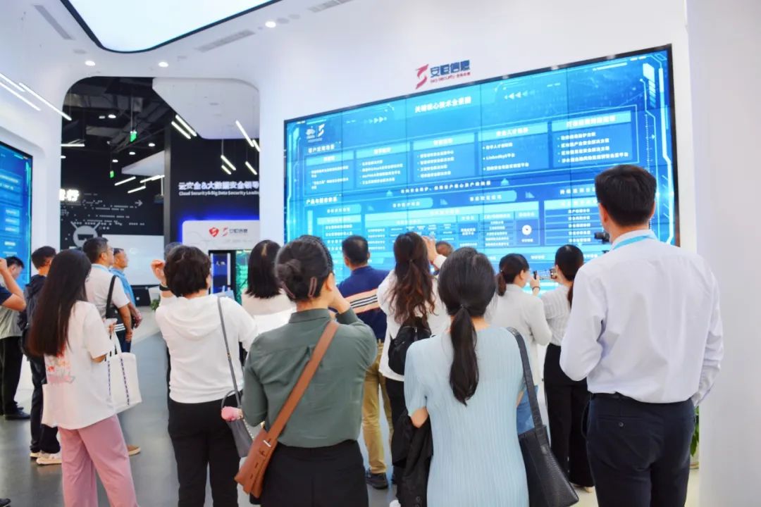 在工作人员的讲解下,大家实地体验安恒信息数字安全产品的发展与创新,感受青年人才为数字安全所注入的全新可能与无限活力。