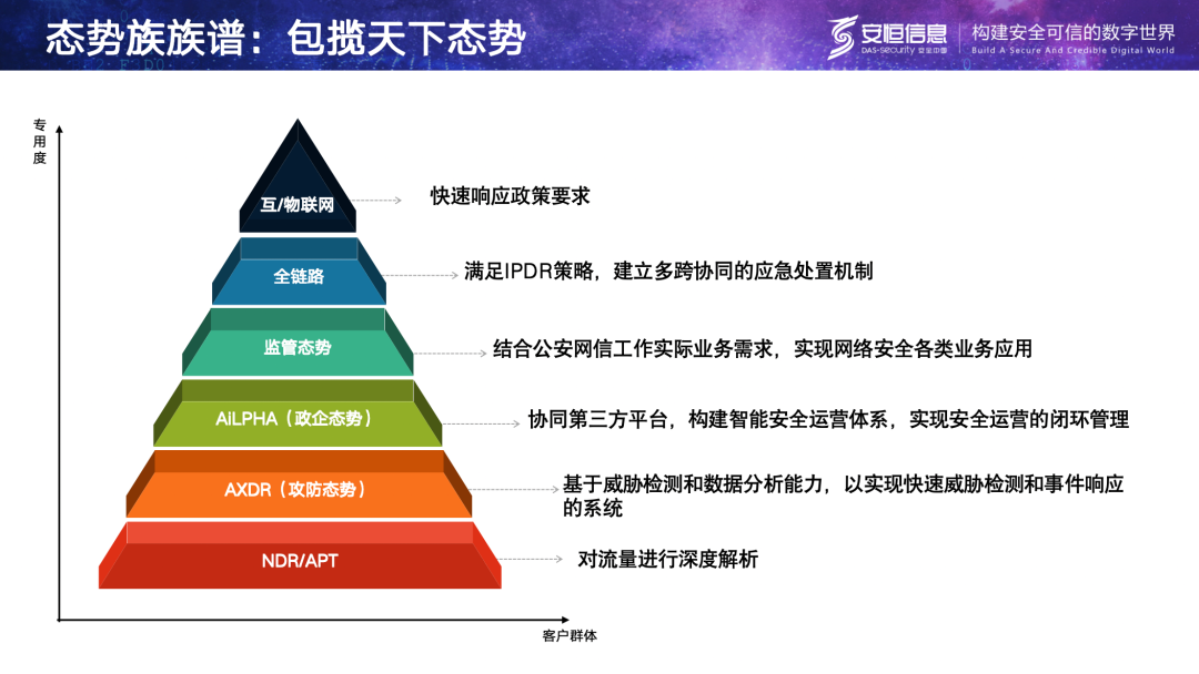 2023年,国家先后出台多项网络安全法规和政策,不断夯实网络安全保障能力和体系建设。安恒信息AiLPHA态势感知产品线步履坚实,紧跟政策导向,找准发力方向,扎实推进AiLPHA态势感知向更高层次迈进。